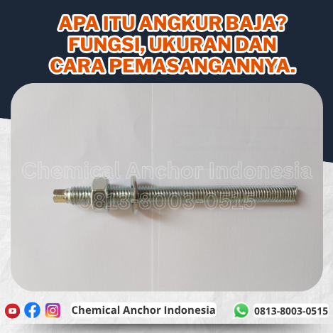 Apa Itu Angkur baja? Fungsi, ukuran dan cara pemasangannya oleh Chemical Anchor Indonesia || Hub. 0813-8003-0515. Pahami fungsi, ukuran, dan cara pasang angkur baja yang benar untuk konstruksi kokoh. Simak panduan lengkapnya di sini!