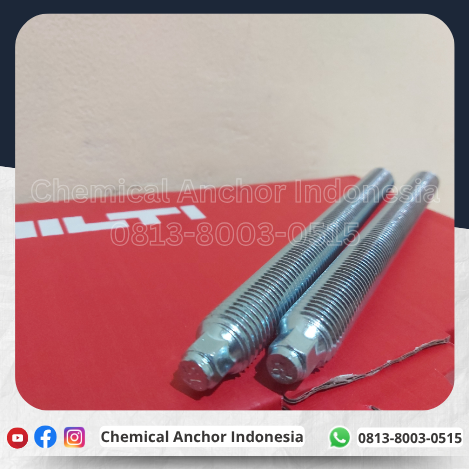 - Pemasangan Baut: Masukkan batang angkur ke dalam lubang berisi kimia dengan gerakan memutar perlahan. Hal ini bertujuan agar cairan kimia menyelimuti seluruh ulir anchor secara merata.