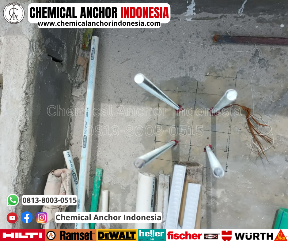 Secara teknis, fungsi dari anchor kimia ini adalah menciptakan kekuatan rekatan yang luar biasa. Chemical atau resin yang disuntikkan ke dalam lubang beton akan membeku dan menyatu dengan pori-pori beton sekaligus mencengkeram besi tulangan (rebar) atau baut. Hal ini memungkinkan penyambungan beton lama dengan struktur baru menjadi sangat solid, seolah-olah keduanya merupakan satu kesatuan yang utuh sejak awal.
